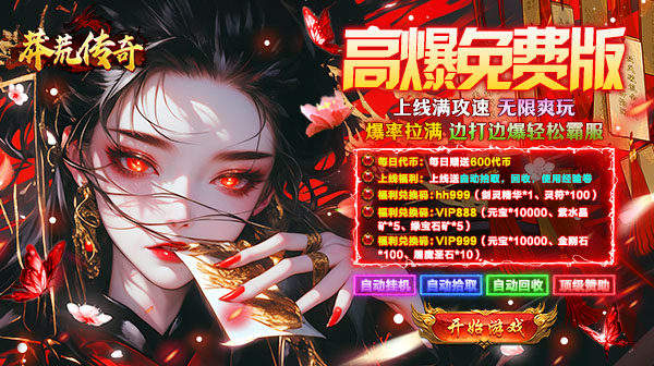 3.开荒福利:送对怪吸血+10%,怪物切割+1000,怪物爆率+100%