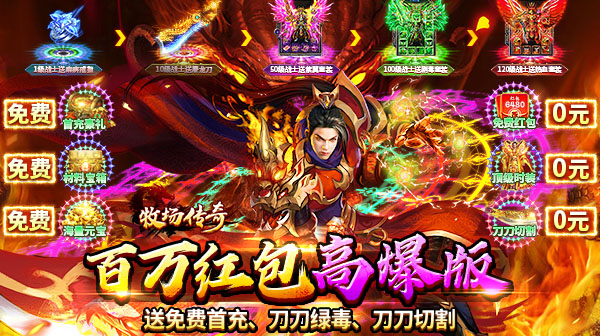 2.免费首充:免费首充送刀刀绿毒、“除魔真人“时装、百万绑定元宝、新人转生宝箱
