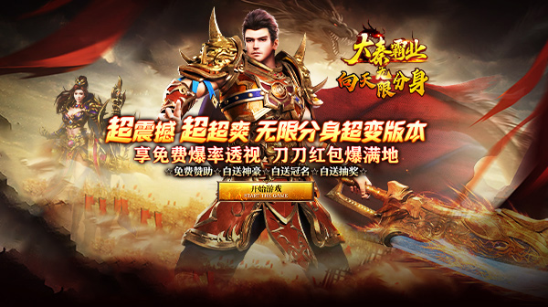 大秦霸业(无限分身代金版) 超震撼超超爽的分身超变版本期待您的到来!免费的爆率透视,充值红包爆满地!杀怪就可激活免费顶赞、白嫖神豪和冠名!百万首爆每1元首爆奖励就给1点累计充值!上线半小时,白嫖千元充值!1米当上大老板!送终极透视戒指,开启火眼金睛,透视高阶材料终极装备!更送终极全屏分身术!白嫖直购币直接零米直购!四大增益暴涨神符更有万元充值红包赠送!特权属性攻击血量超级暴涨!超震撼超超爽的分身超变版本期待您的到来!