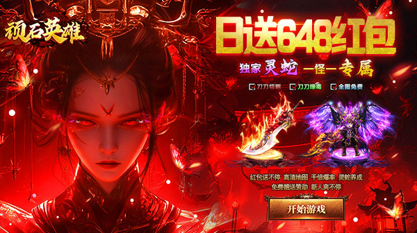 顽石英雄(天天送648红包)是一款高爆神器单职业!游戏内置3折充值福利,开局送超级灵蛇成长神器,范围拾取、刀刀绿毒、新人称号爆率+30%,切割+8888、打野神剑、天天648红包,每天在线领充值红包,各种红包和道具拿到手软,一怪一专属,每个怪都会爆出对应的专属装备,BOSS光柱爆满屏,新版神器等你来战!