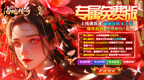 海蛇传奇是一款是一款全新散人传奇,主打无脑上手,福利力度大,不玩套路,登录就能领取328代币奖励!游戏内更有免费vip、百亿灵符获取;超快攻速,砍怪手感拉满,小怪也能爆神装,还不来看看这款传奇,礼包也能用爆出来的充值卡购买,散人也能很好的玩下去。