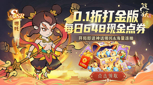 2、开局即送神话哪吒! 附赠6480仙玉、万枚金币、30连抽,海量资源领不停,开局即巅峰!